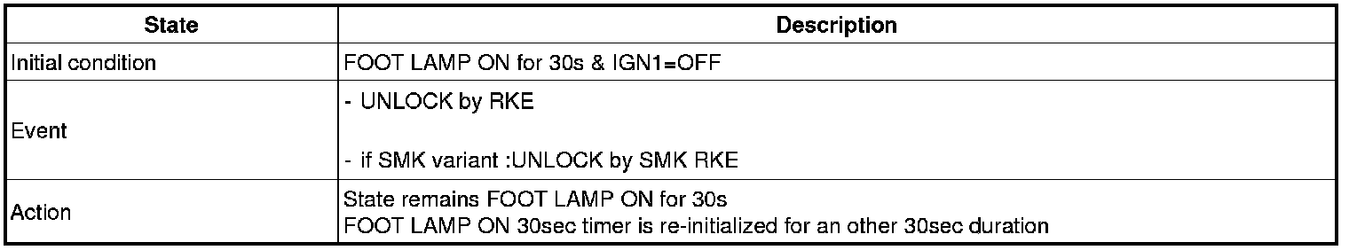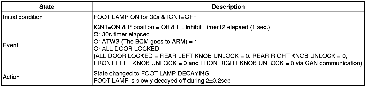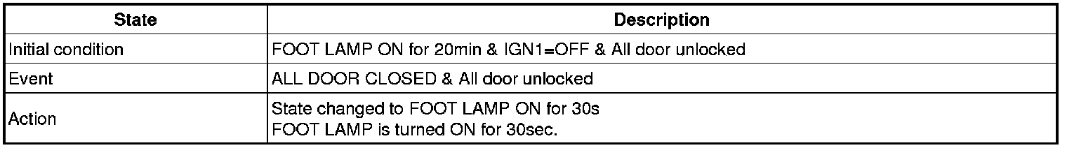 (2) Transitions from Foot lamp ON for 30s state: