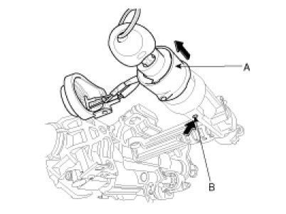5. If it is necessary to remove the key lock cylinder (A), Remove the key lock cylinder (A) after pushing lock pin (B) with key ACC.