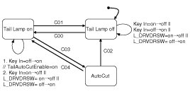 L_Tail Lamp SW=on & Key In=on 1 // O_Tail Lamp Rly=on & Tail Auto Cut Enable=on