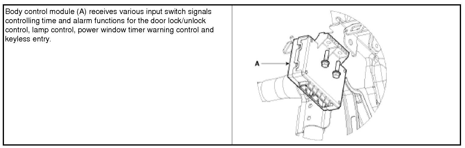 Home >> Hyundai >> 2013 >> Accent L4-1.6L >> Repair and Diagnosis >> Powertrain Management >> Relays and Modules - Powertrain Management >> Relays and Modules - Computers and Control Systems >> Body Control Module >> Description and Operation