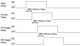 (1) To prevent inrush current from being duplicated during driving motor, automated control of driving motor will defer driving time for 100ms each, and the priority is as follows. SLIDE > RECLINE > Front height > rear height