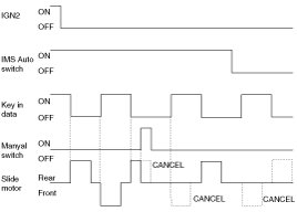 1. If Signal "IPM KEY IN" transmitted from IPM and signal "LOCAL KEY IN" in case that key is removed are changed from "LOW"(KEY IN) ->"HIGH" (KEY OFF), SEAT SLIDE is moved 50mm backward from KEY OUT position.