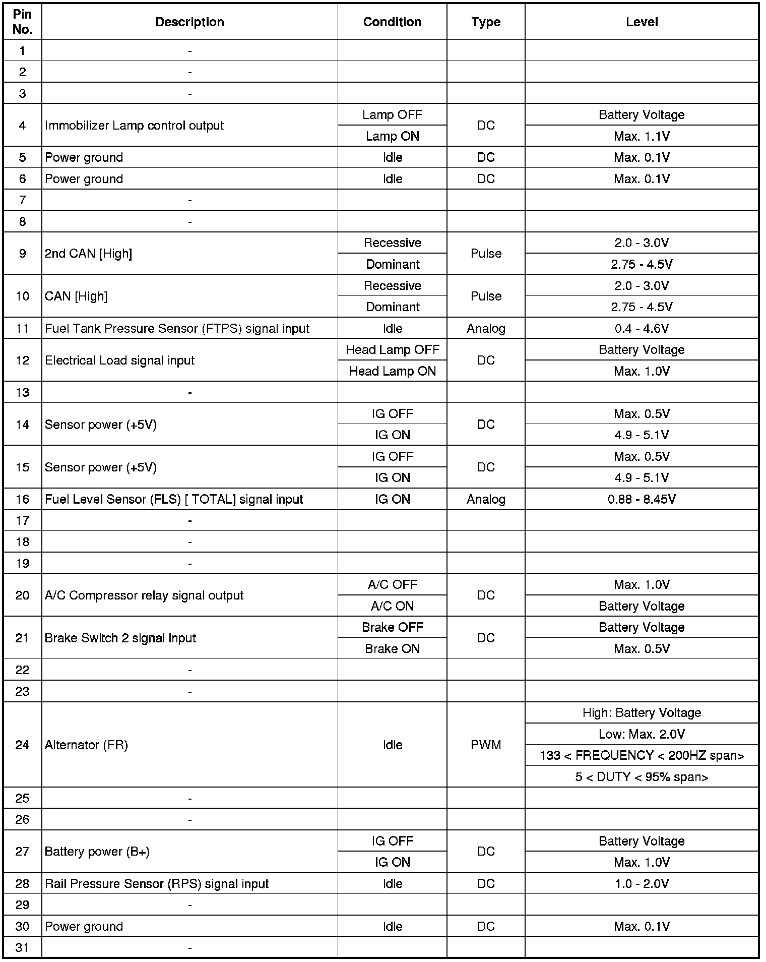 ECM Terminal Input/Output Signal