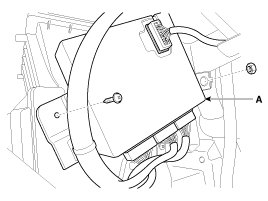 3. Disconnect the smart key unit connector, and then remove the bracket and smart key unit (A) after loosening the screw and nut.