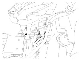 3. Remove the smart key unit (A) with loosening bolt and nut, then disconnect the connector.