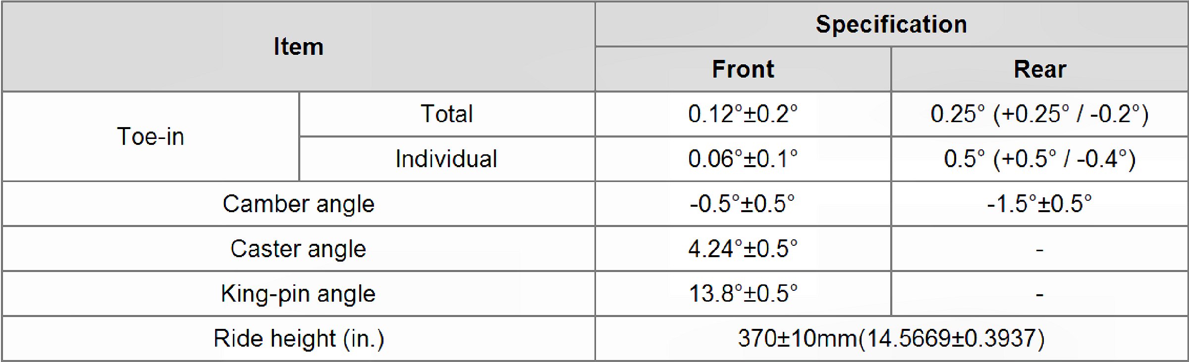 Wheel Alignment Specifications