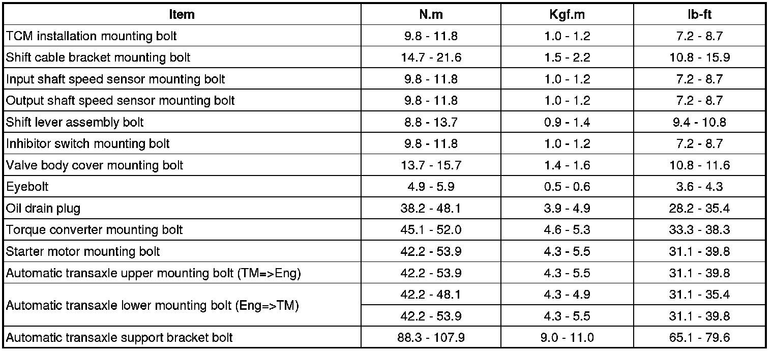 Tightening Torques
