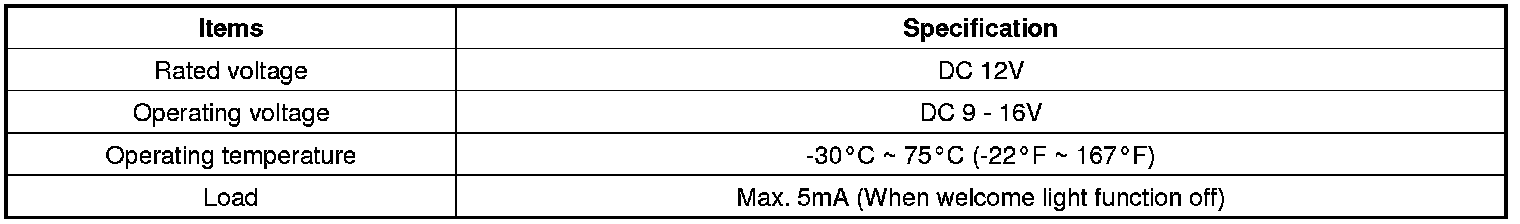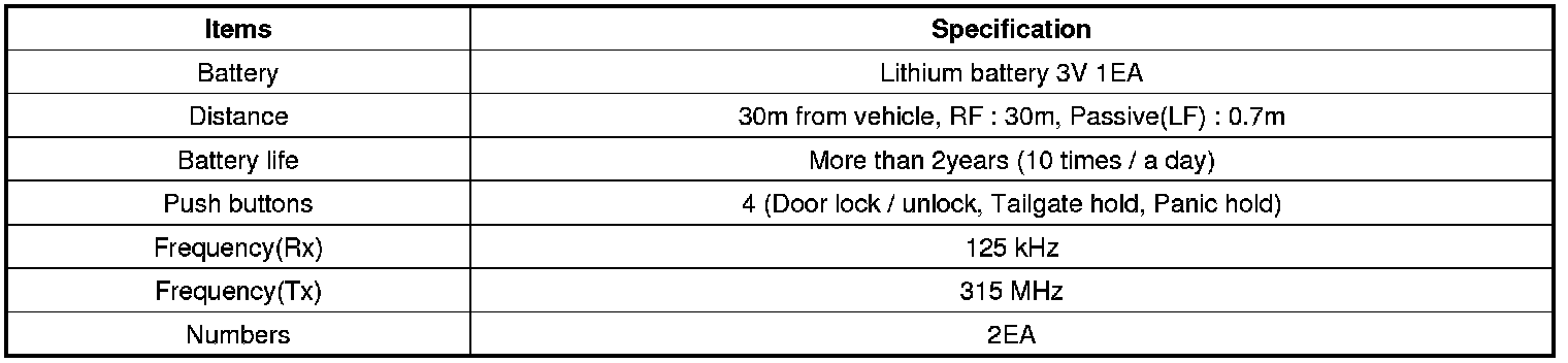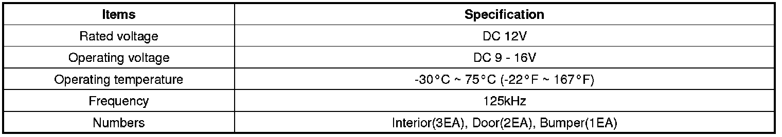 Keyless Starting System: Specifications