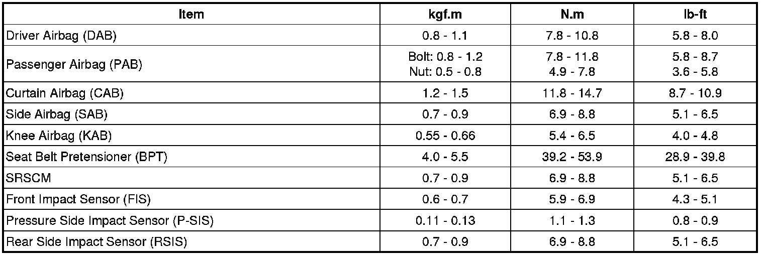 Tightening Torques
