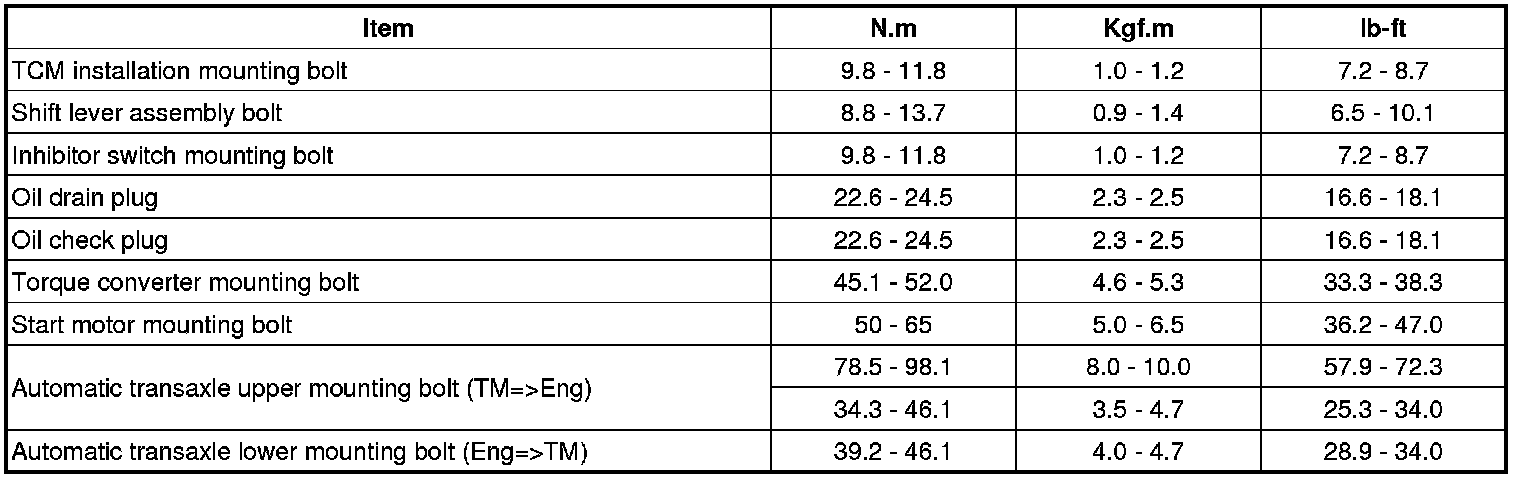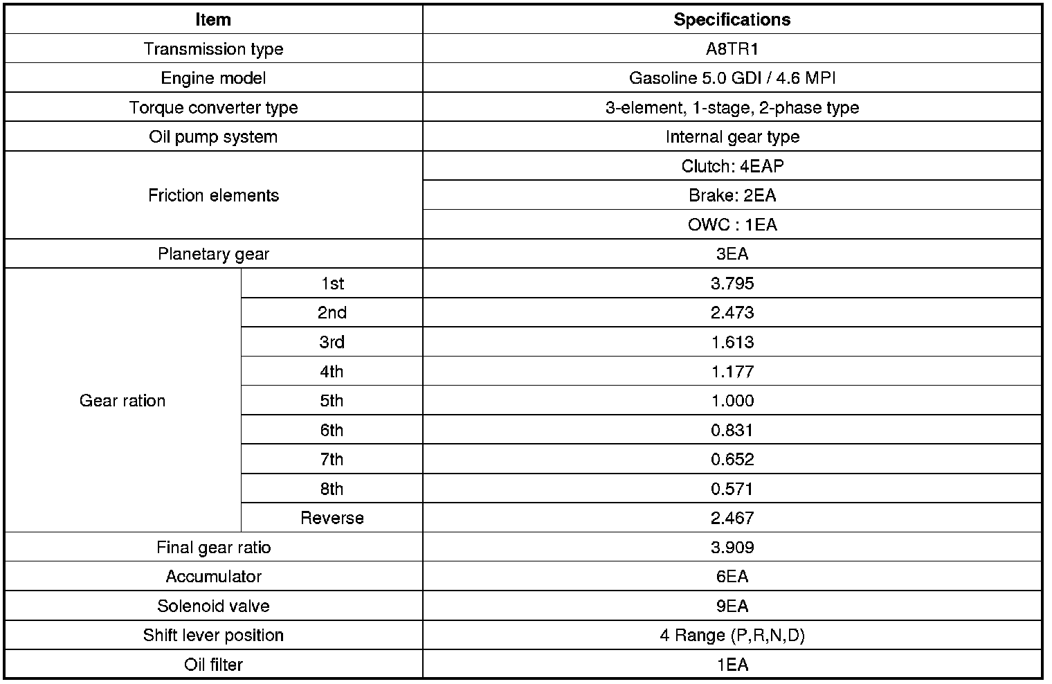 Home >> Hyundai >> 2013 >> Equus V8-5.0L >> Repair and Diagnosis >> Specifications >> Mechanical Specifications >> Automatic Transmission/Transaxle