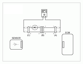 - With each connector still connected, measure the voltage between the chassis ground and terminal 1 of each connectors (A), (B) and (C) as shown in [Fig 4].