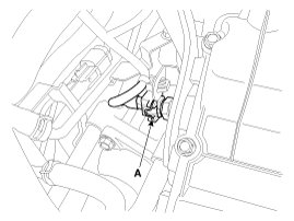 3. Disconnect the connector (A), and then remove the CVVT oil temperature sensor (B).