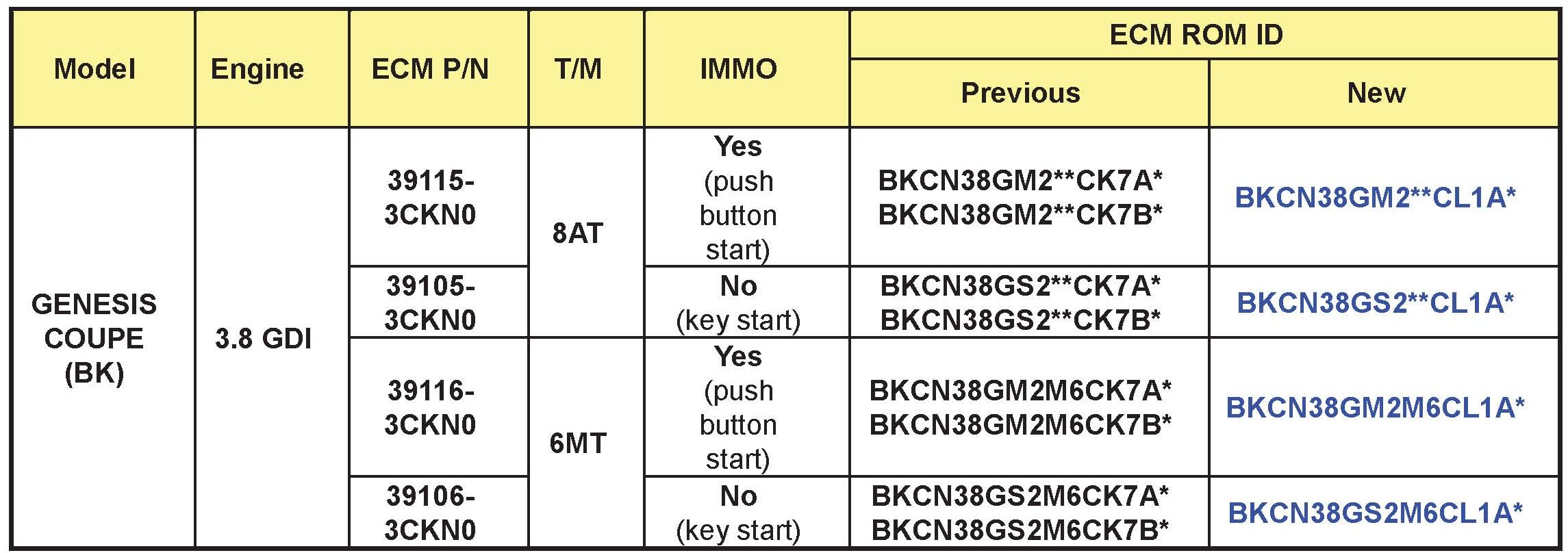 ^ 2013 MY Genesis Coupe (BK) 3.8L GDI vehicles