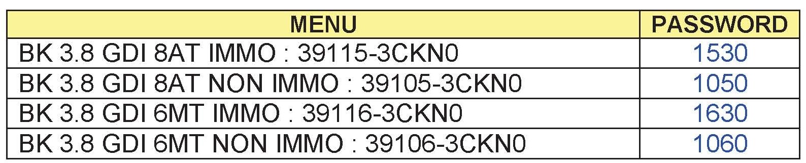 ^ It is critical to identify the correct ECM Part Number in the PASSWORD table or the ECM may be permanently damaged. It is recommended to remove ECM and read the part number from the label to confirm.