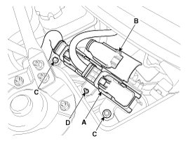 4. Remove the ECM & TCM bracket installation bolts (C) and nut (D).