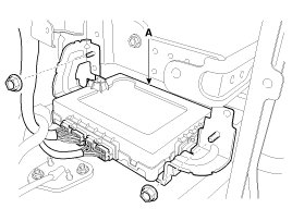4. Remove the body control module(A) after loosening 2 nuts and disconnecting the connectors.