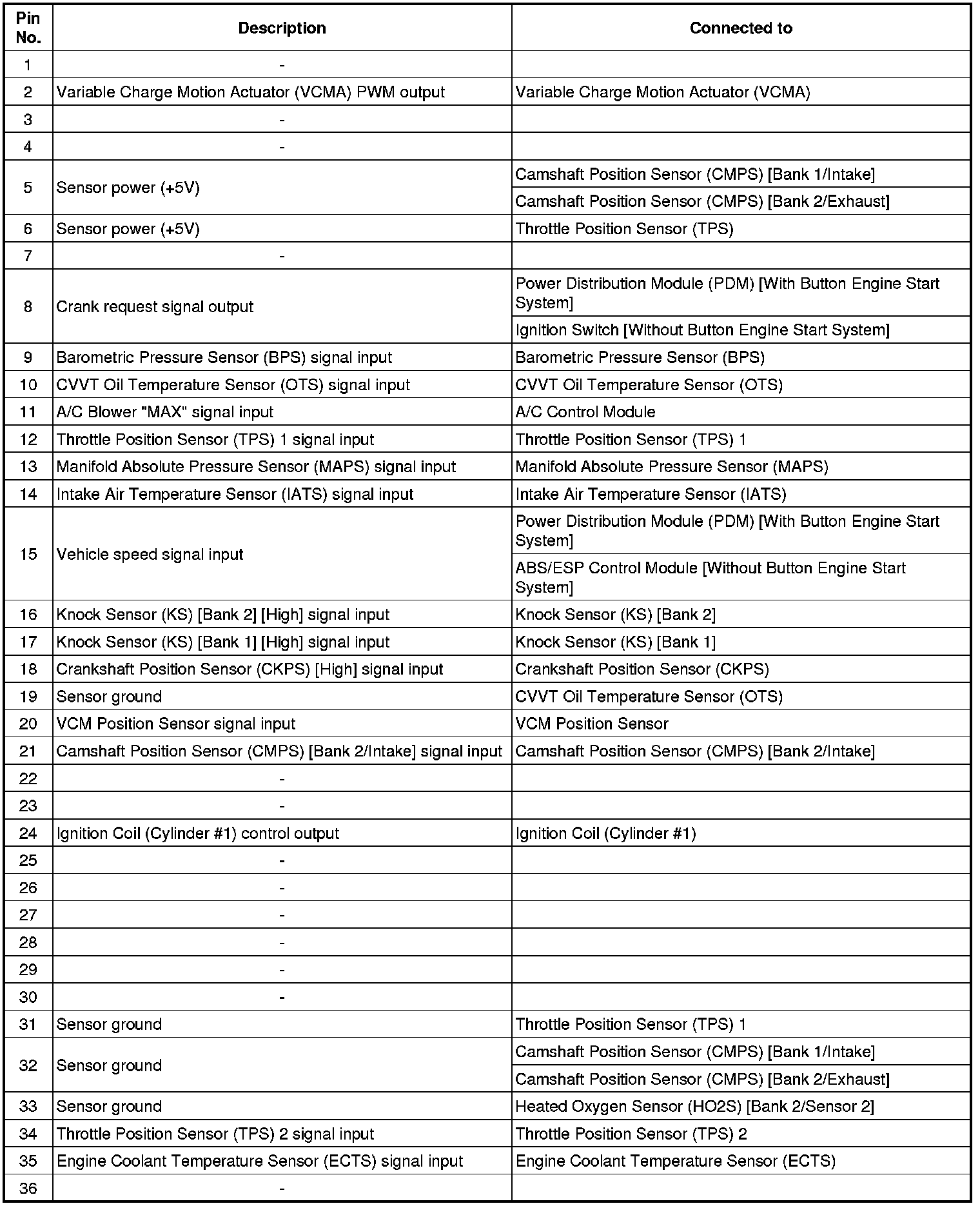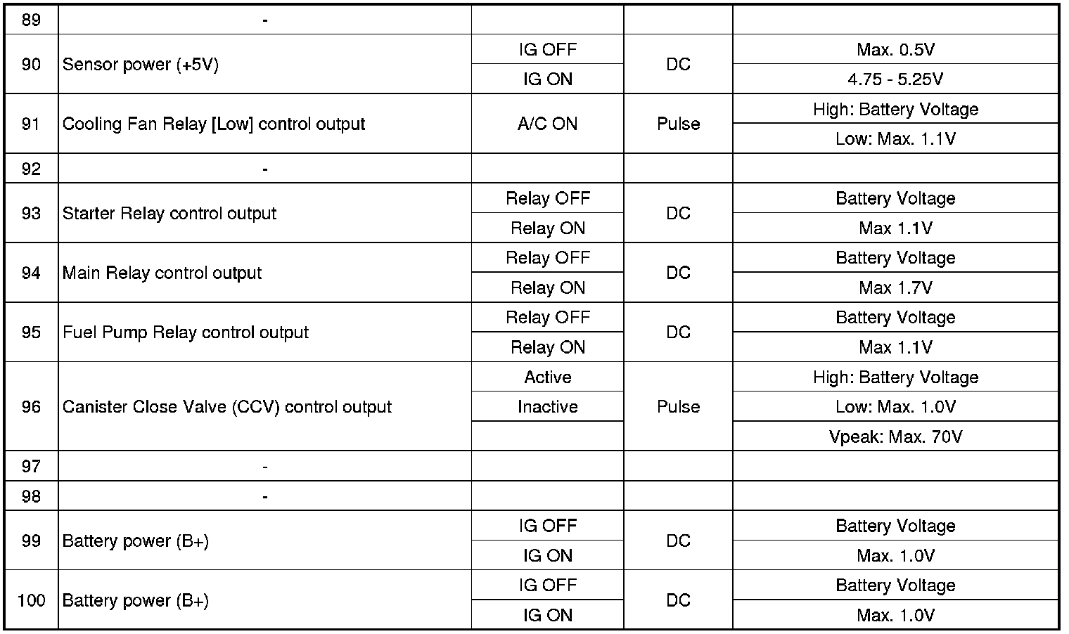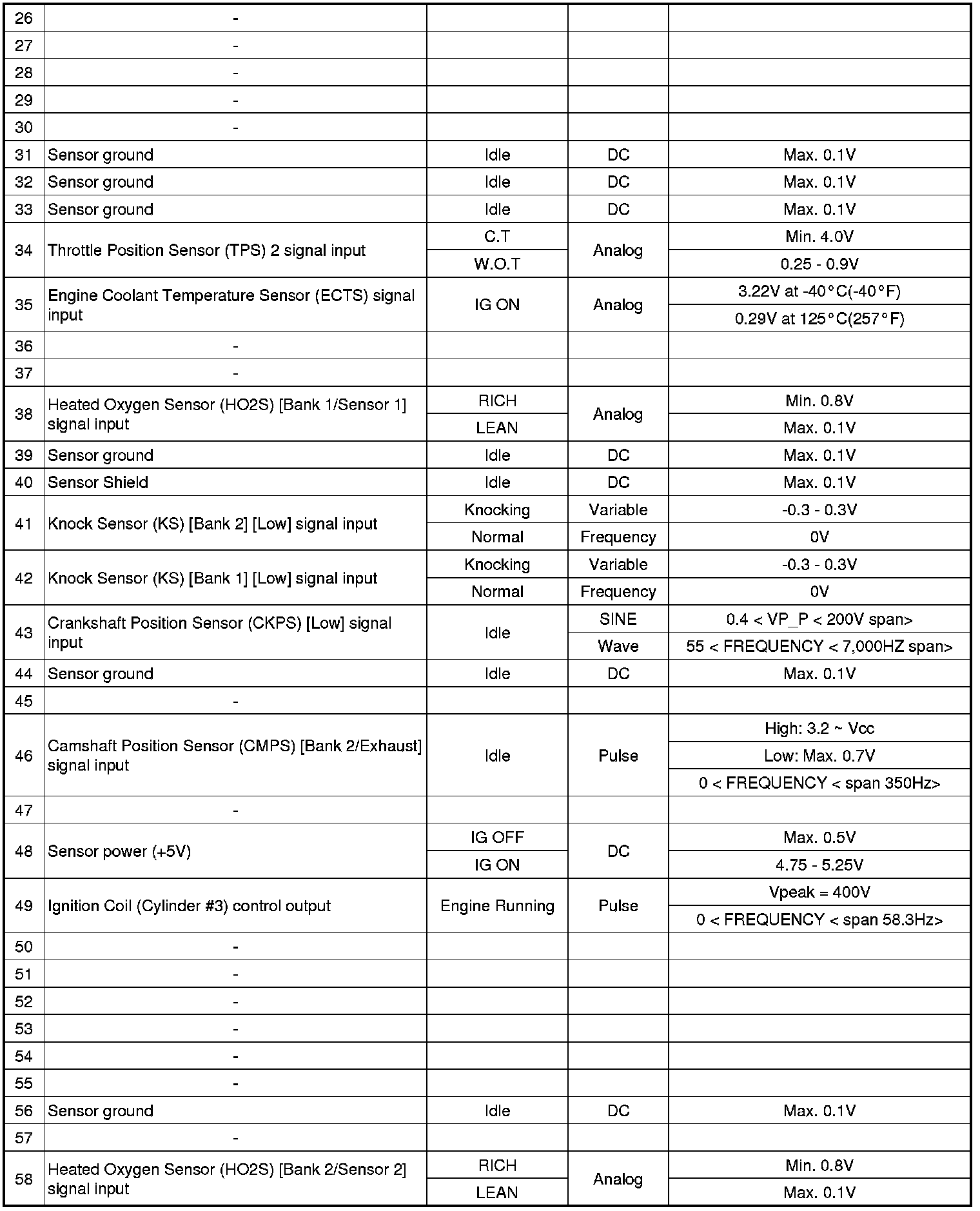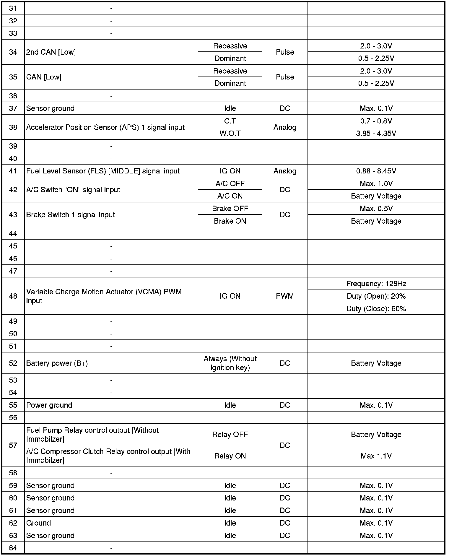 ECM Terminal And Input/Output signal