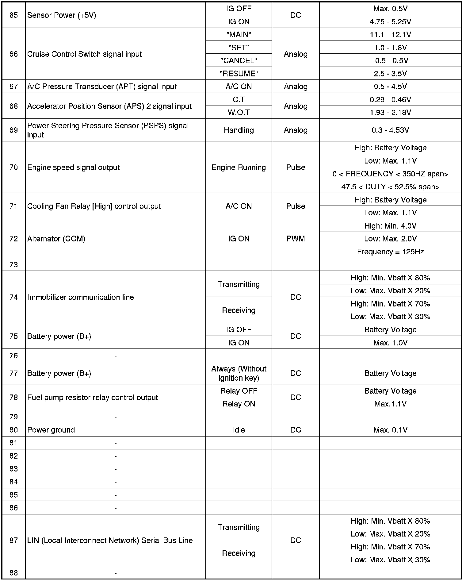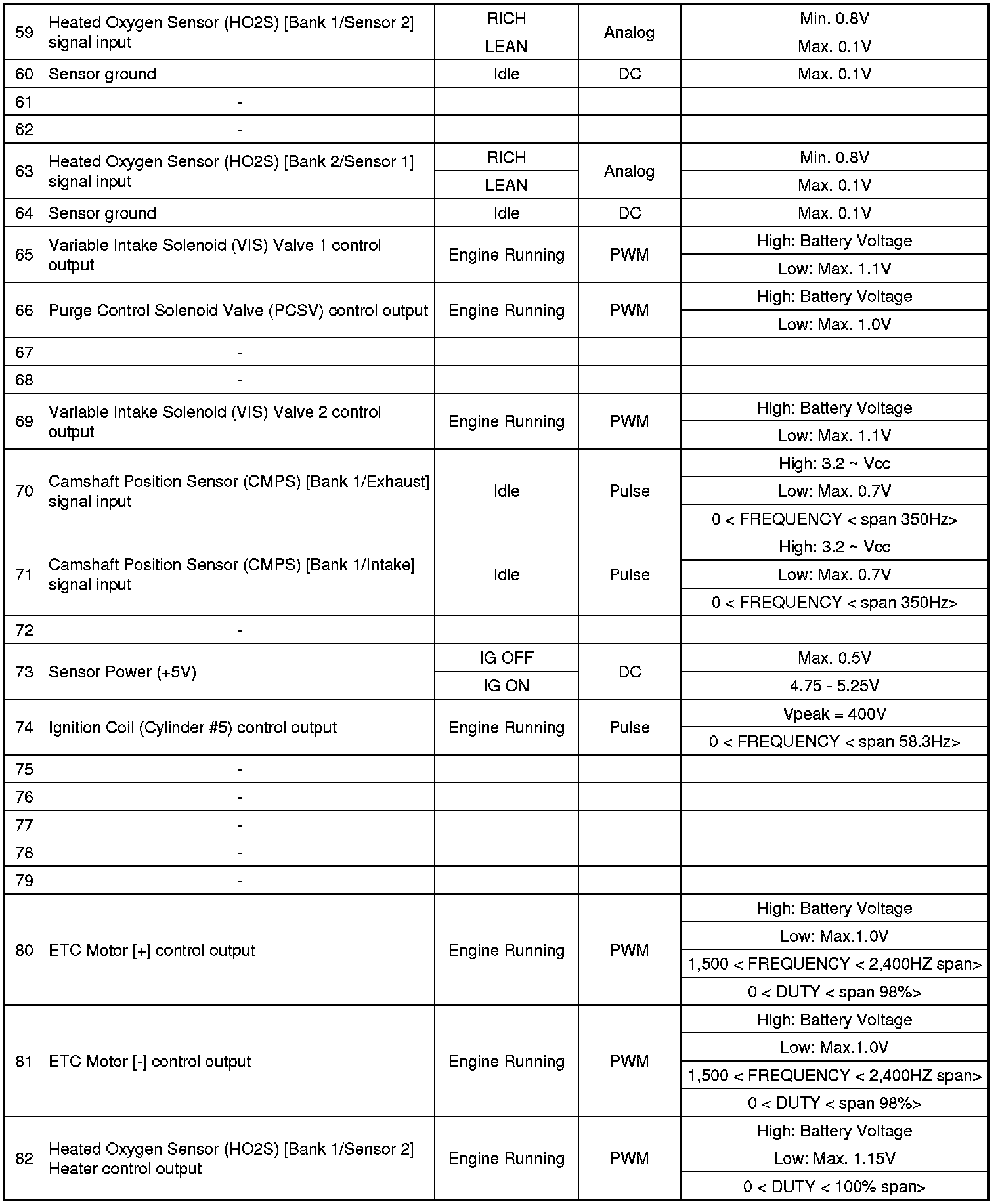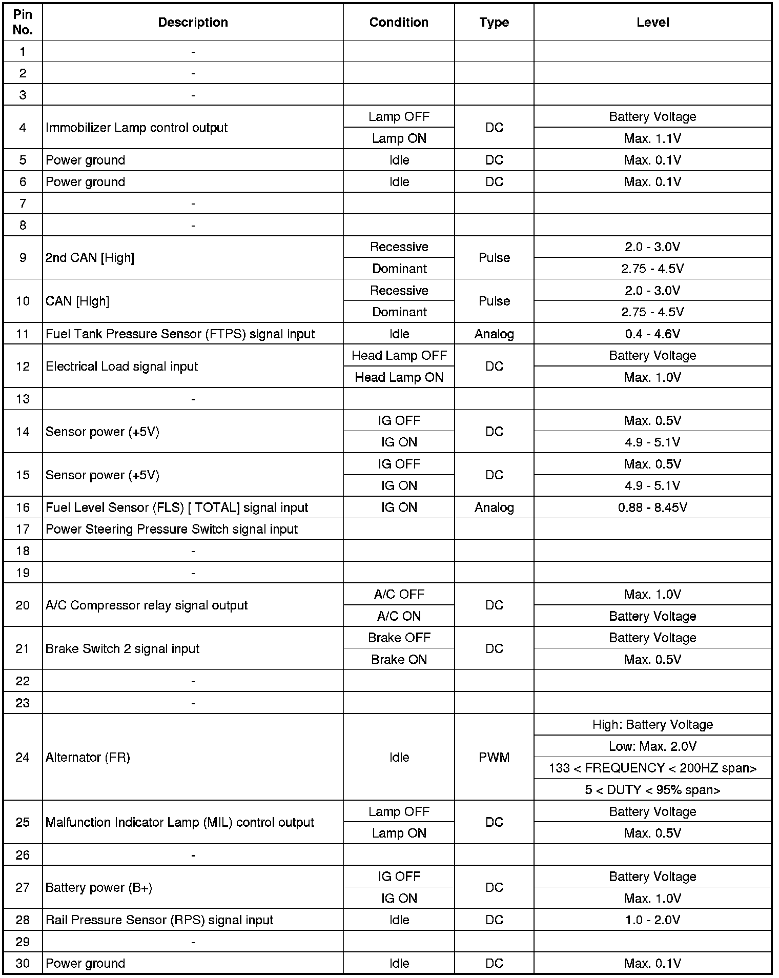 ECM Terminal Input/Output Signal