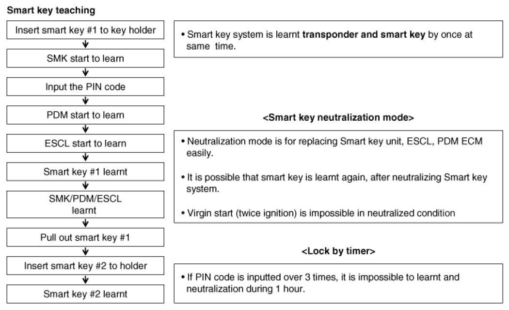 - SMK replacement: SMK is not learnt, PDM and ESCL and SMART FOB are already learnt with same PIN code