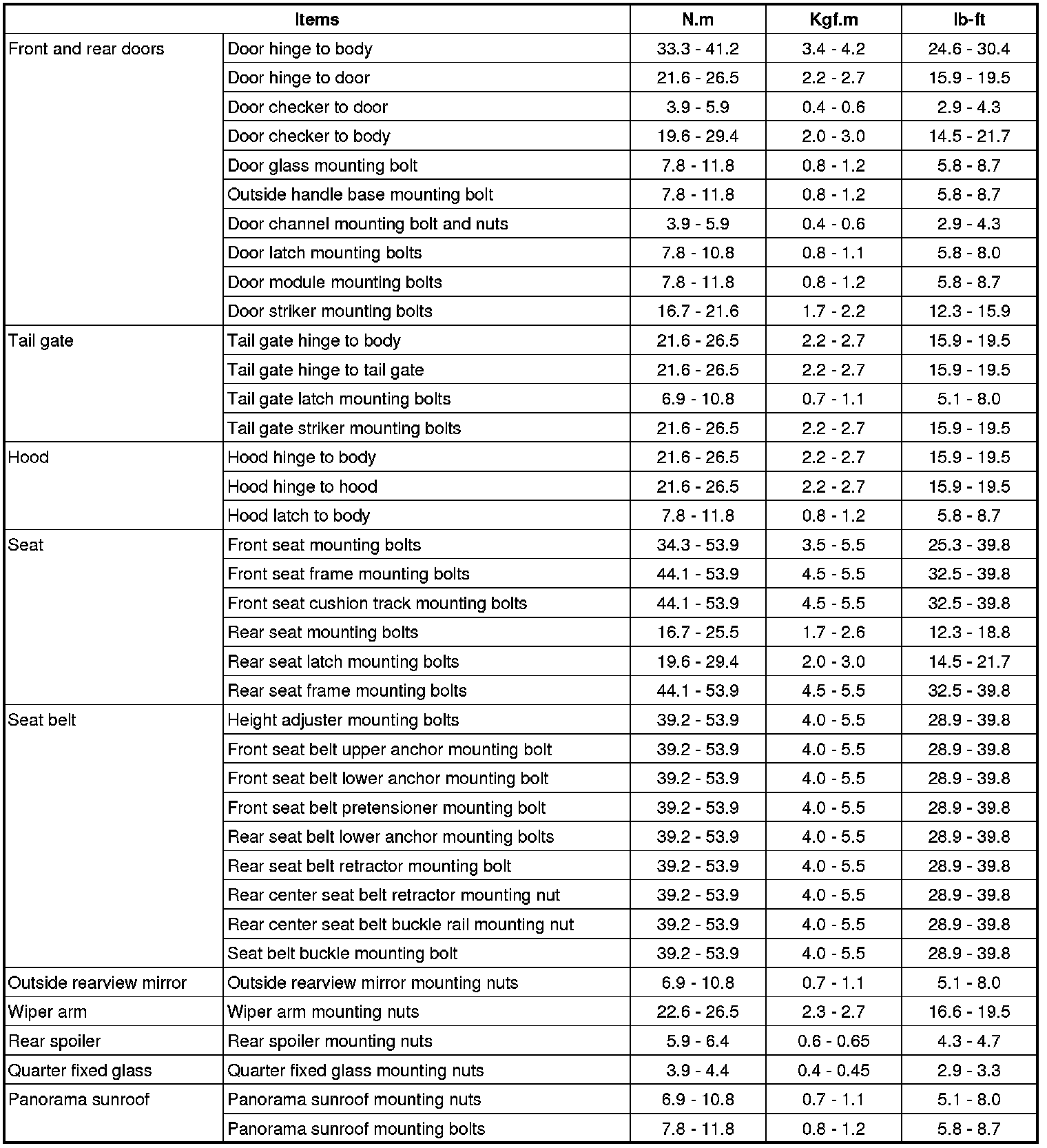Tightening Torque