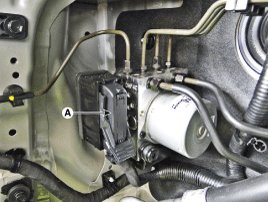 3. Pull up the lock of the HECU connector (A) and then disconnect the connector.