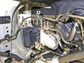 5. Loosen the HECU bracket nuts (A) and then remove HECU and bracket.