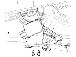 2. Loosen the mounting bolts (2EA) of automatic head lamp leveling unit (B).