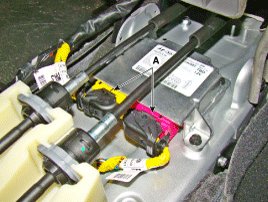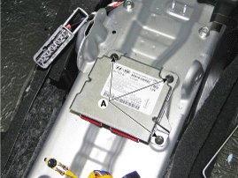 5. Pull up the lock, of the SRSCM connector, then disconnect the connector (A).