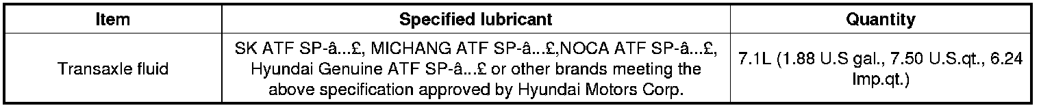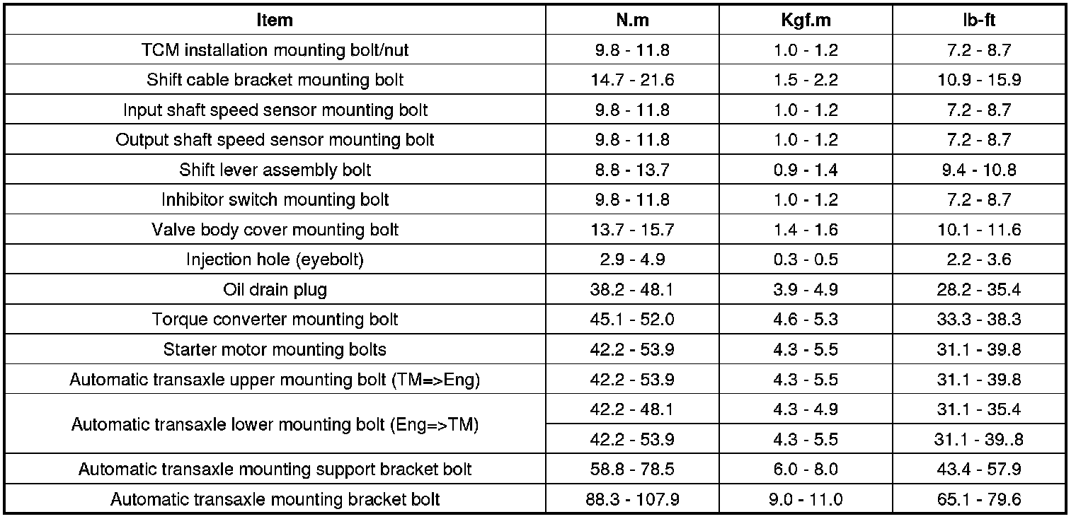 Home >> Hyundai >> 2013 >> Santa Fe AWD L4-2.4L >> Repair and Diagnosis >> Specifications >> Mechanical Specifications >> Automatic Transmission/Transaxle >> System Specifications