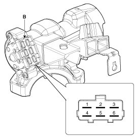 4. Remove the ignition switch (A) after disconnecting the 6P connector (B).