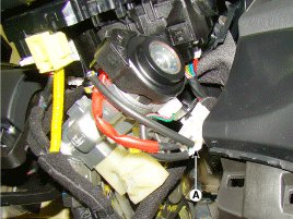 5. Remove the key warning and immobilizer connector (A).