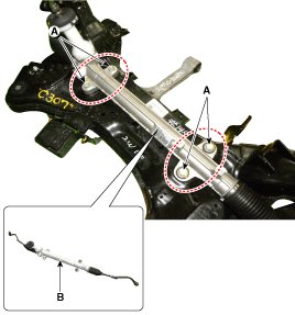 13. Remove the steering gearbox (B) from the cross member by loosening the mounting bolt (A-4ea).