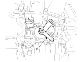 Use a SST (09480-A3800) or 0.1969in.( 5mm) bolt, fix the inhibitor manual control lever in the N jig hole (A) when you assemble the inhibitor (B).