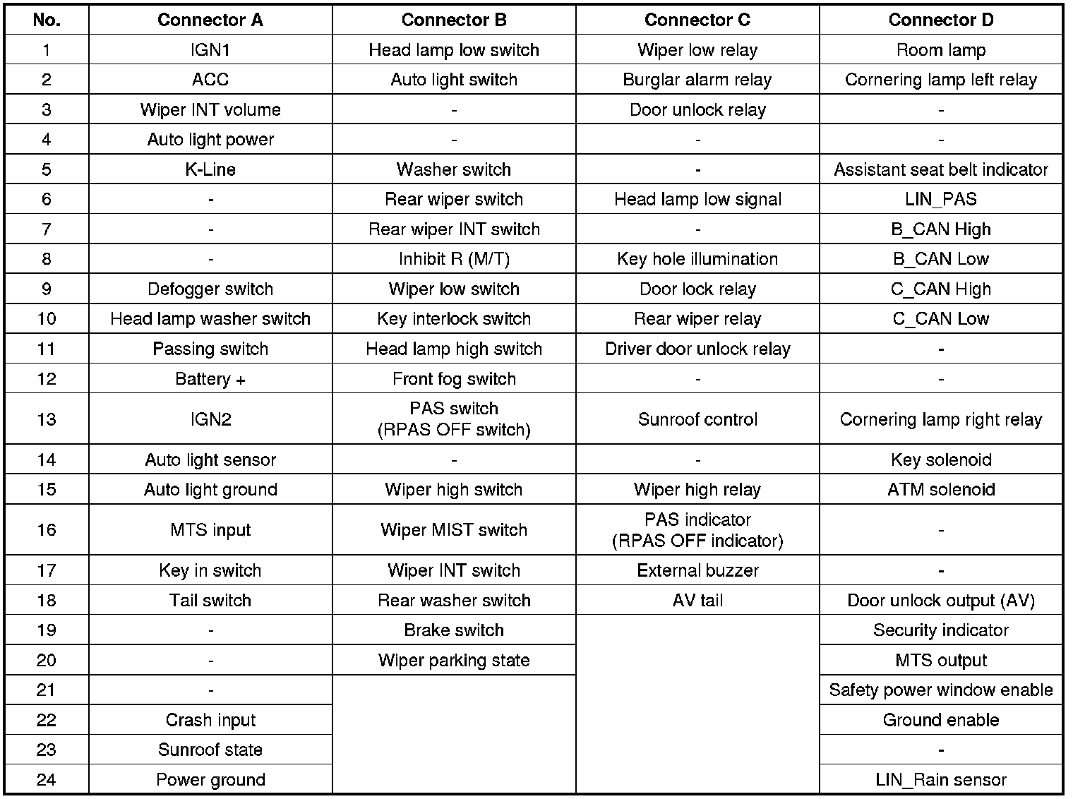 Connector Pin Information