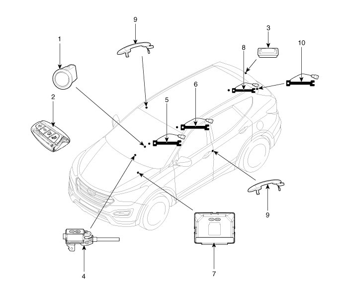 Home >> Hyundai >> 2013 >> Santa Fe FWD L4-2.4L >> Repair and Diagnosis >> Starting and Charging >> Starting System >> Keyless Starting System >> Service and Repair >> Button Engine Start System