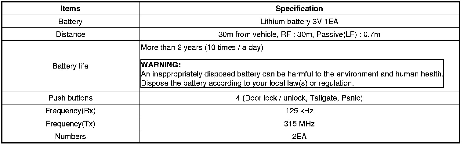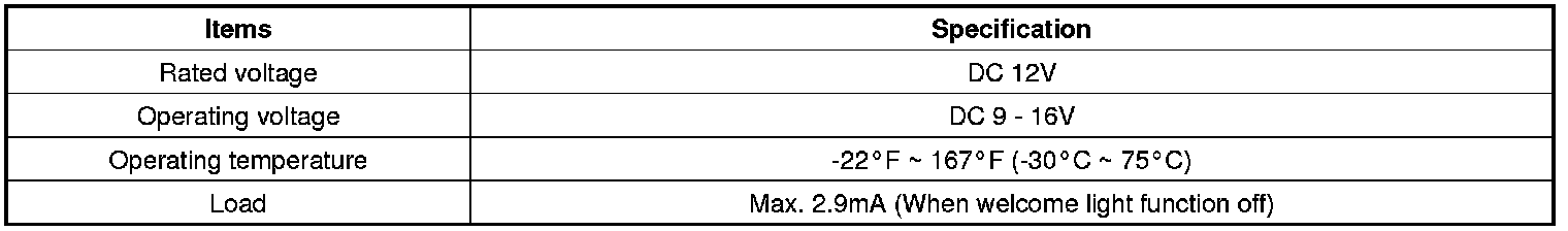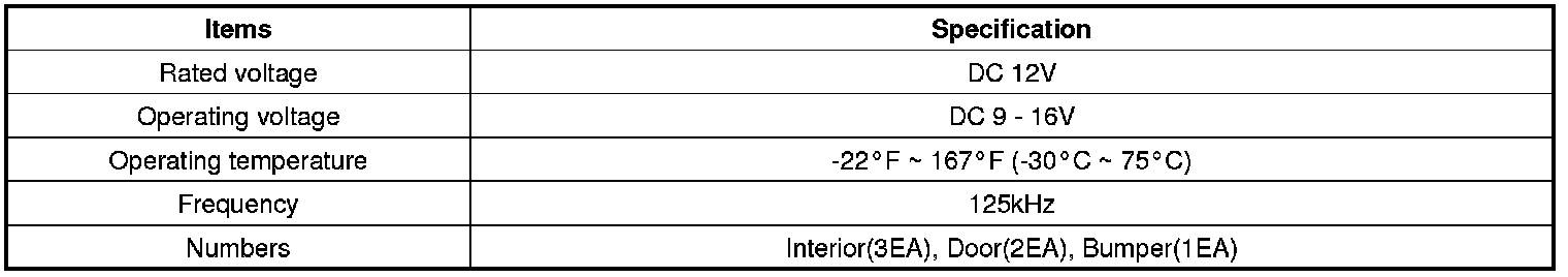 Keyless Starting System: Specifications