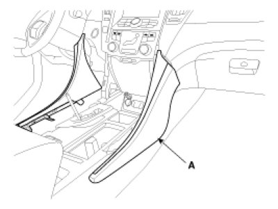 2. Remove the crash pad garnish (A).