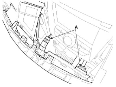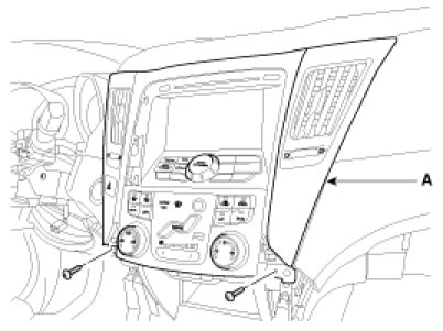 4. Disconnect the connectors (A) and then remove the center facia panel from the crash pad.