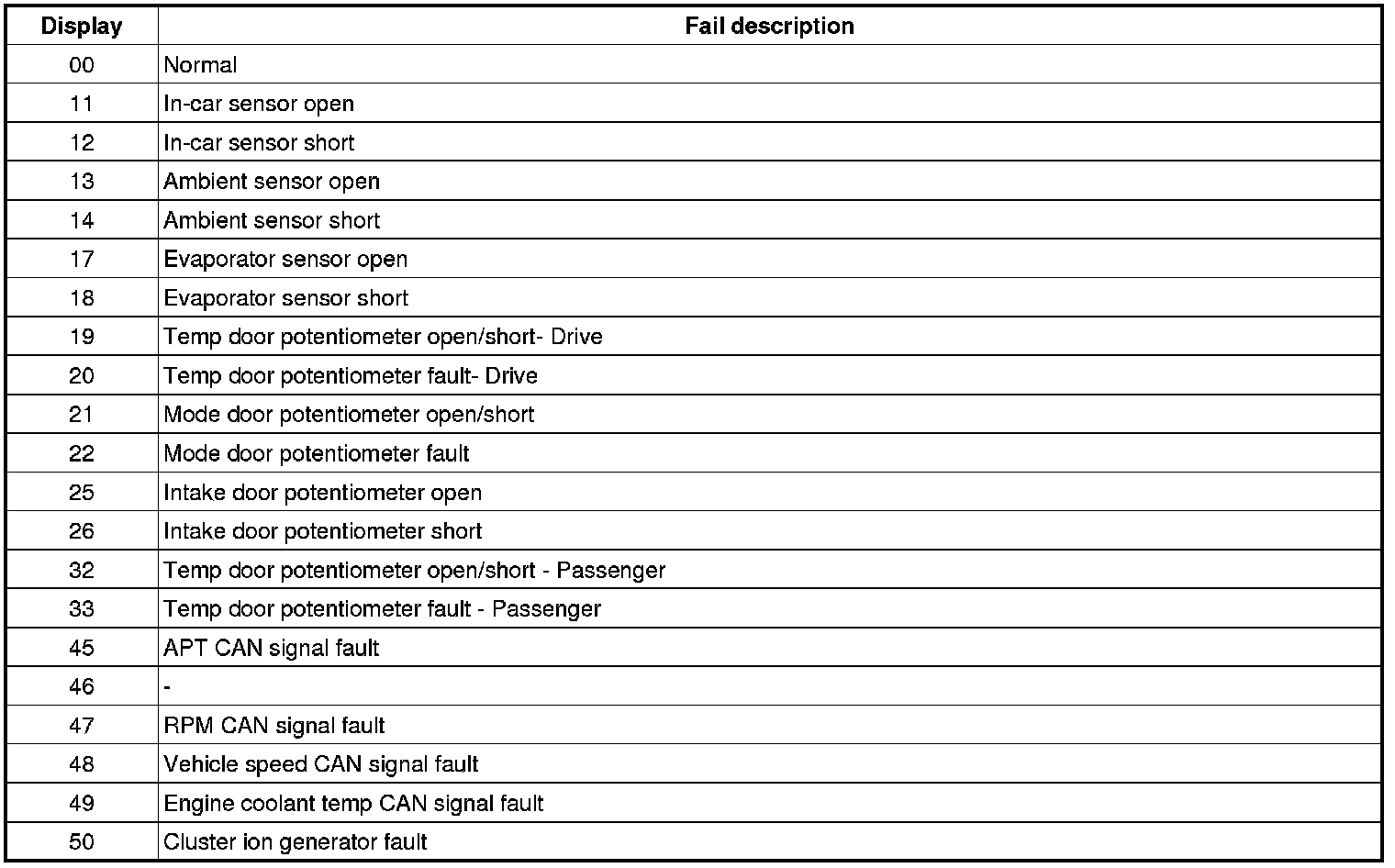 3. Fault code display