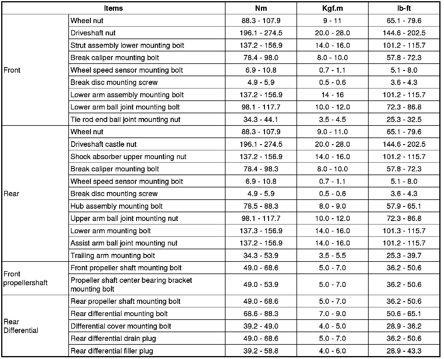 Tightening torque