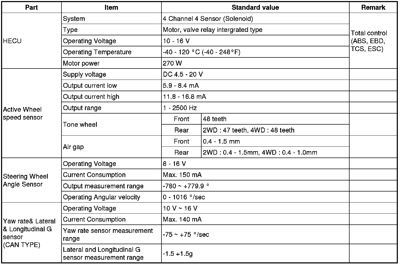 Specification(ESC)