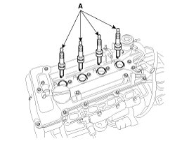 2. Using a spark plug wrench, remove the spark plug (A).