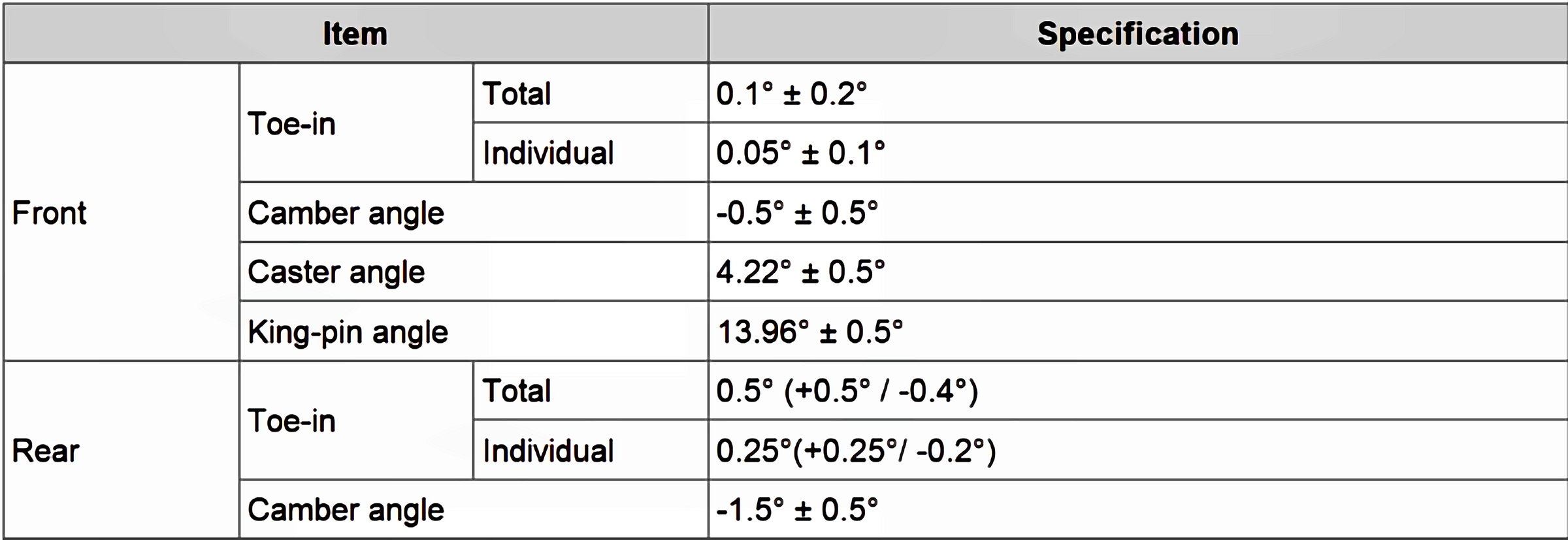 Wheel Alignment Specifications