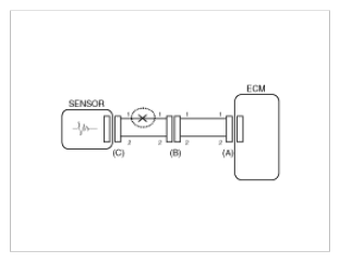 In this case the measured resistance between connector (C) and (B1) is higher than 1MΩ and the open circuit is between terminal 1 of connector (C) and terminal 1 of connector (B1).