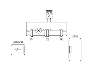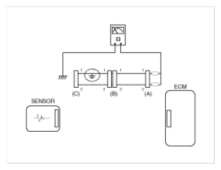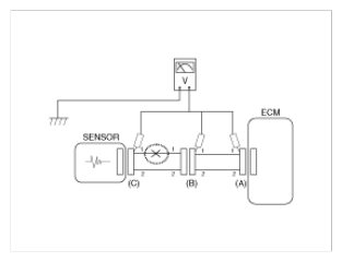 1. With each connector still connected, measure the voltage between the chassis ground and terminal 1 of each connectors (A), (B) and (C) as shown in [Fig 4].