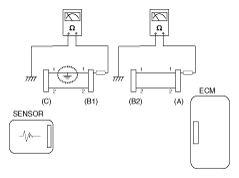 - Disconnect connectors (A), (C) and measure resistance between connector (A) and (C) as shown in [FIG. 2].