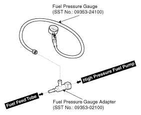 2. Install the special service tool for measuring the fuel pressure in between the fuel feed tube and the high pressure fuel pump (Refer to the Fig 1 below).