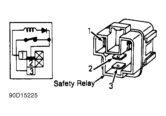- Connect terminal No. 2 of relay to ground. Using ohmmeter, ensure continuity does not exist between terminals No. 2 and 3.