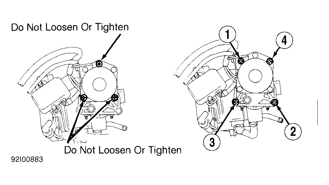 Do not loosen or tighten painted screws. For removal and installation of throttle motor, see Fig 1 and Fig 2 .