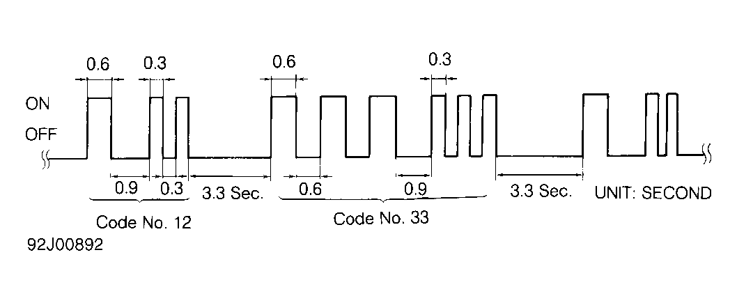 - If, during diagnosis, an item or component is found to be okay, and no repair is attempted during 50 ignition switch ON period, codes on that item or component will be erased.